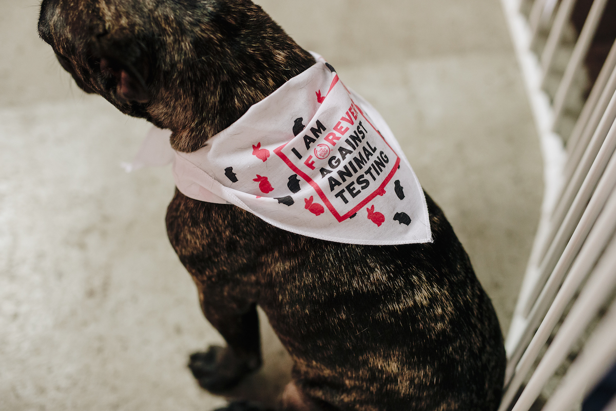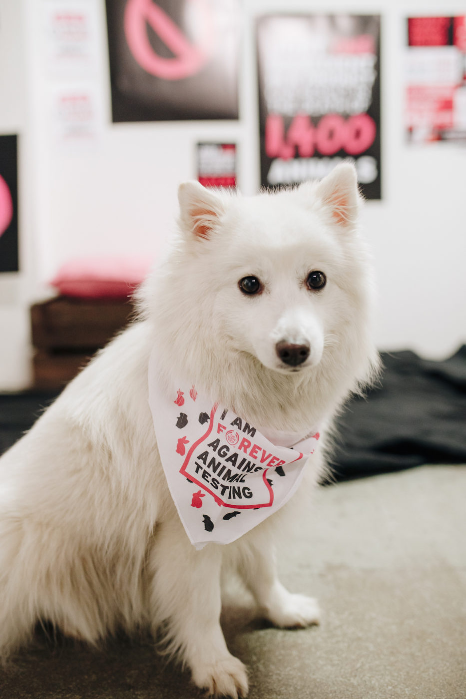 Företaget hade förutom skönhetspress (och väldigt mycket modepress?) bjudit in ett ljuvligt hunddagis för att understryka och lyfta upp frågan om att djurförsök ännu är tillåtet i 80 % av världens länder. Supergulligt! Min tax hade nog gått runt och stressat och snott all frukost men de här hundarna var lugna och kände varandra väl.